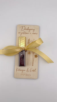 Personalized wedding thank you notes for guests. Thank you notes made of birch plywood. Merci chocolate is not included.